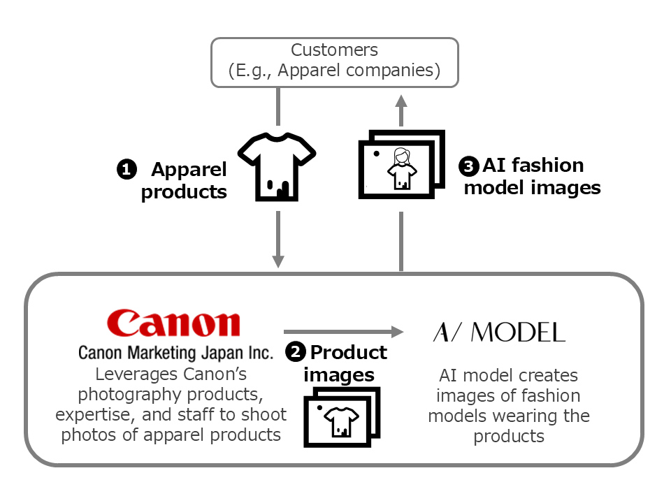 Canon Marketing Japan Inc. (Canon MJ) has invested in AI model Inc. (AI model) through its corporate venture capital (CVC) fund Canon Marketing Japan MIRAI Fund and initiated a joint feasibility study targeting apparel companies that run e-commerce sites.